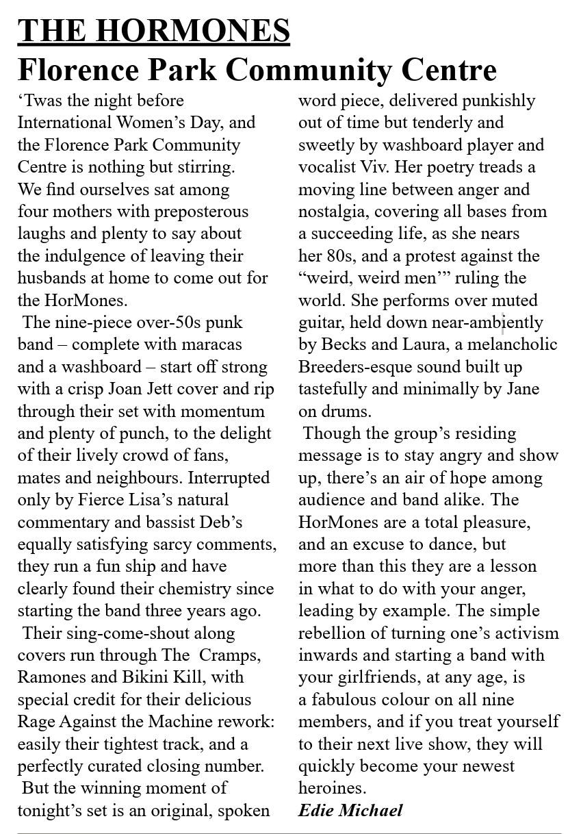 • The horMones: a punk band with a difference: BBC 13th March 2024